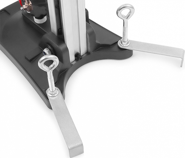 - В опорную платформу встроена система ваккумного крепления, позволяющая закрепить на ровной и гладкой поверхности: для работы вакуумной системы необходимо подключение вакуумного насоса, также сохранена возможность классического крепления с помощью анкерных болтов
