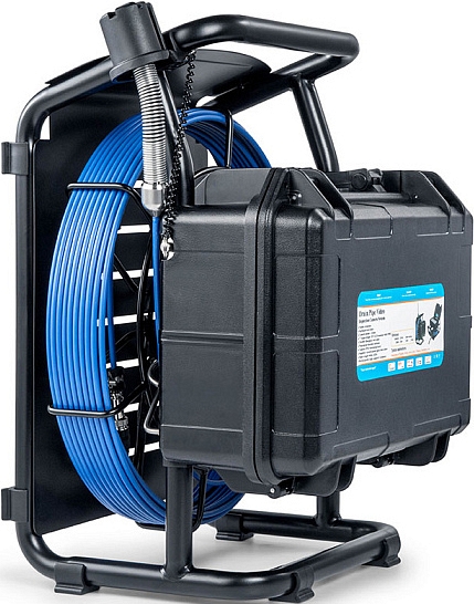 Проталкиваемая система видеоинспекции трубопроводов Rotorica 3499F-40 (Роторика 3499Ф-40) с камерой CMOS, Ø 23 × 51 мм, широким углом обзора 130° и разрешением формата Full HD 1080P AHD (1920 × 1080), записью видео и аудио, встроенным счетчиком расстояния и катушкой с кабелем Ø 5,2 мм × 40 м предназначена для осмотра внутренних трубопроводов, канализации и сливов, а также для инспекции каналов, дымоходов, воздуховодов в производствах и домах.