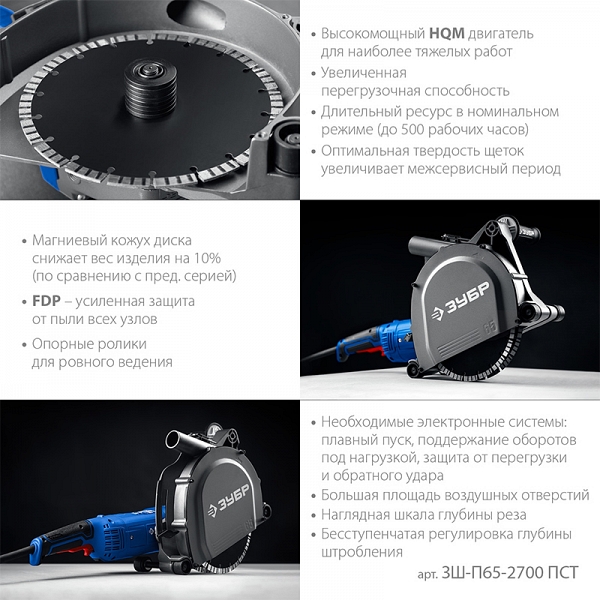 Преимущества штробореза Зубр Профессионал ЗШ-П65-2700 ПСТ: