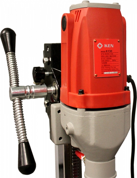 Установка алмазного бурения Ken 6130N (Кен 6130Н) предназначена для сверления отверстий Ø 10 – 130 мм в бетоне, железобетоне, камне, кирпиче и других строительных материалах, вертикально под углом 90°, с подачей и без подачи воды, при прокладке коммуникаций.