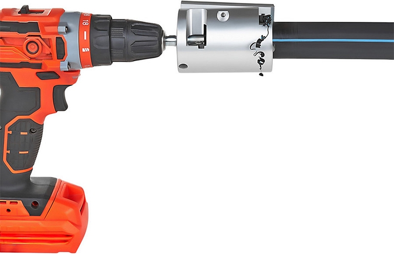 Устройство для снятия оксидного слоя с полиэтиленовых труб Gas Fusion УСО-110 (Газ Фьюжин USO-110) – скребок под дрель или шуруповерт для эффективной зачистки полиэтиленовых (пэ, пнд) труб Ø 110 мм перед муфтовой раструбной и электромуфтовой сваркой в стесненных условиях ограниченного пространства.